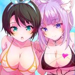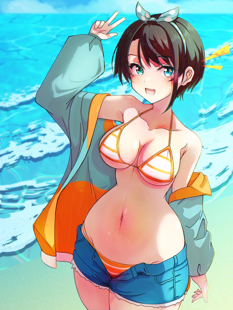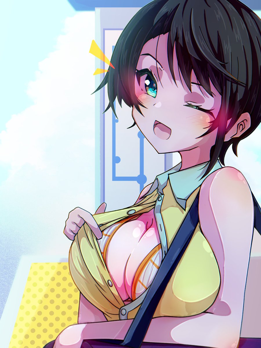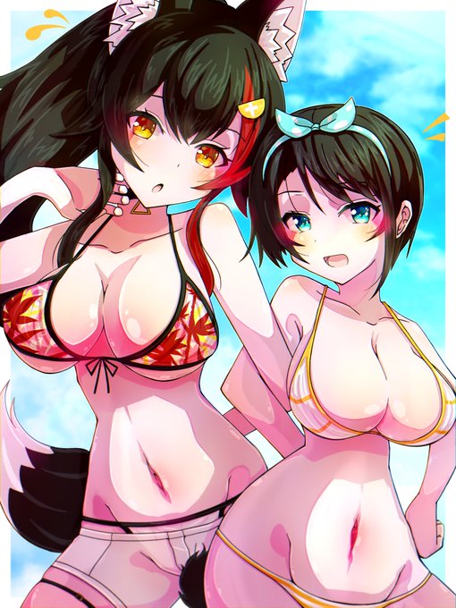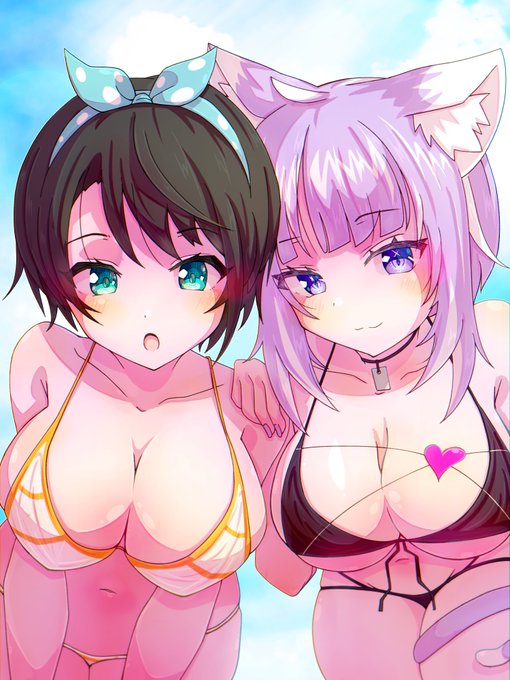 #みおーん絵 #プロテインザスバル 「なにー?君、ナンパ? 残念でした、ミオちゃんは今日、スバルとデートするの〜!いこー、ミオちゃん」 「え、あ、スバル〜。あ、ごめんね💦そういうことらしいから〜」