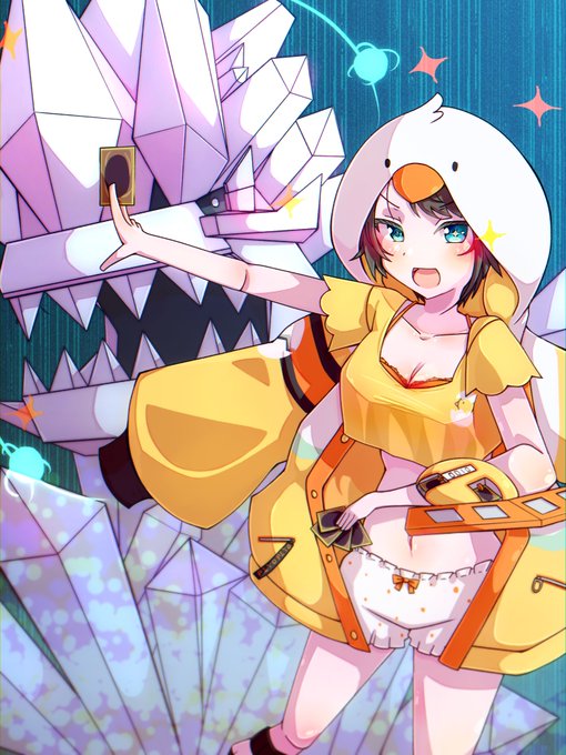 #プロテインザスバル 最近、夜な夜な現れる巷で噂のデュエリストがいる。 カチコチドラゴンをエースに使う鳥のパーカーを着た素性不明の彼女は、特別強いわけではないが、最後まで諦めない姿に皆惹かれ出している。 だが白熱してくるとパーカーを脱ぎ出すのは目のやり場に困るから勘弁してほしい。
