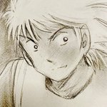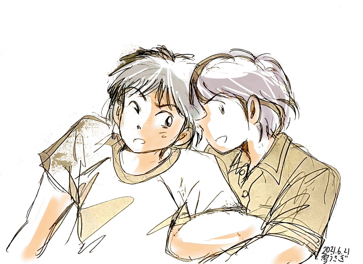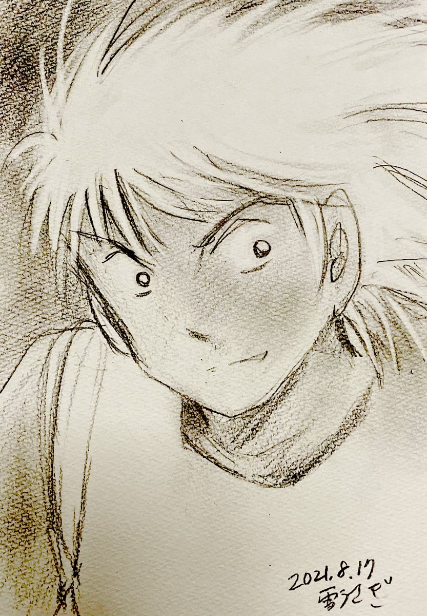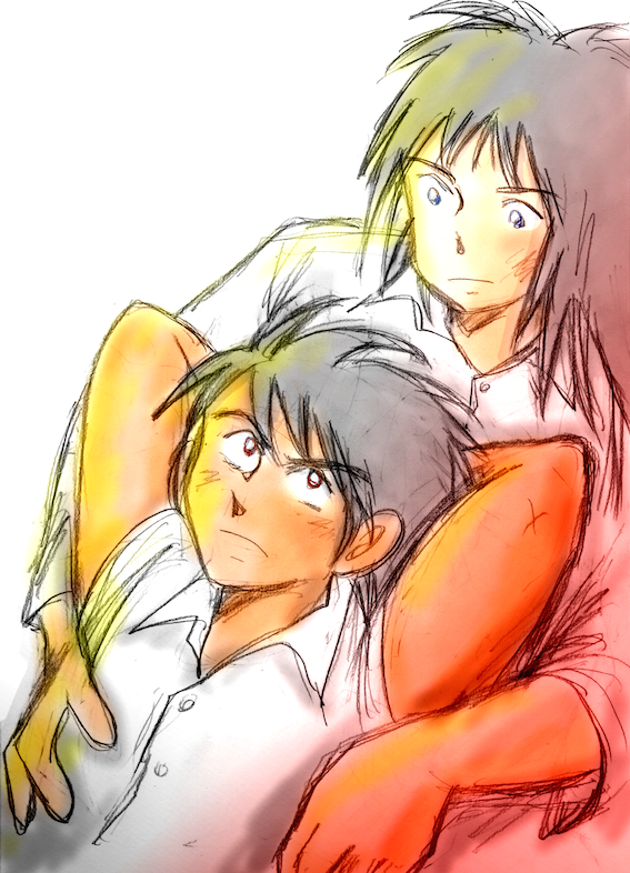 #みんなの推しキャラの初描き絵と最近の絵を見せて欲しい 左、スキャナもないペンタブもない頃、筆ペンで主線描いてデジカメで取り込んで指マウスで色塗ってた。その後、鉛筆画をいかに細工するか、という方向に進化してしまったので線はアナログのまま。いやあおんなじ構図だけど誰やねんお前。