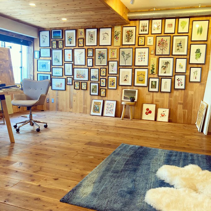 acrylic painting 全作品の裏にサインと作品名のラベルを貼って再度飾りました。ここだけで62点あります^_^ #Acrylicpainting #art #原画 #illustration_best #アクリル絵具 #絵描き #painting #挿絵 #絵描きさんと繋がりたい #絵画 #アクリル画 #originalart #artwork #作品