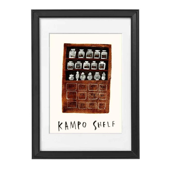 「Kampo shelf」 漢方の古い歴史を感じさせる棚です。 なぜかワクワクするのが不思議。 「薬膳のく暮らし365日」(著)川手鮎子 自由国民社 製作中の挿絵の1枚です。 アクリル画。 #Acrylicpainting #原画 #illustration_best #絵描き #挿絵 #絵描きさんと繋がりたい #絵画 #アクリル画