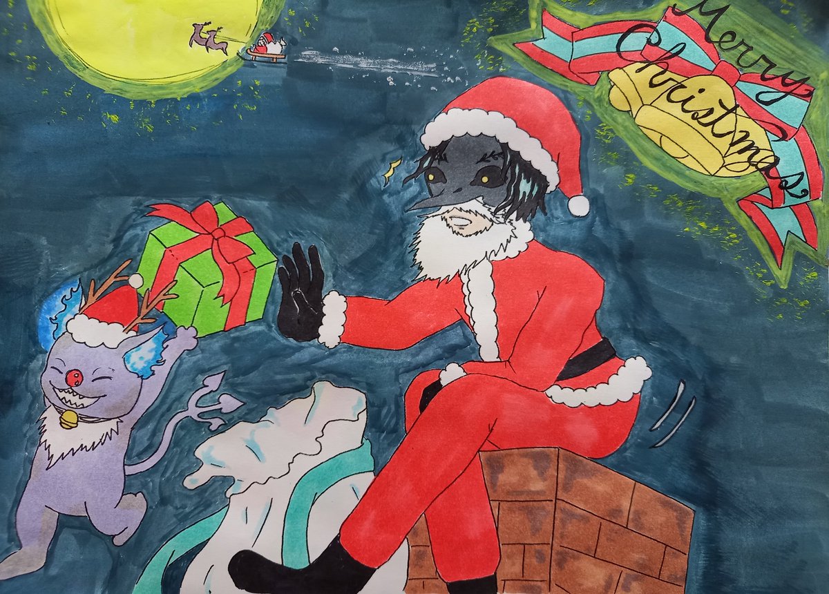 #twst_クリスマス2021 #twstファンアート #ツイステファンアート 波呉様の企画に学園長で参加させていただきました。 グリム「プレゼントはいただくんだぞー」 学園長「あ、こら。ちょっと待ちなさ…あっ!」 あわてんぼうの学園長サンタが煙突から降ってくる10秒前。