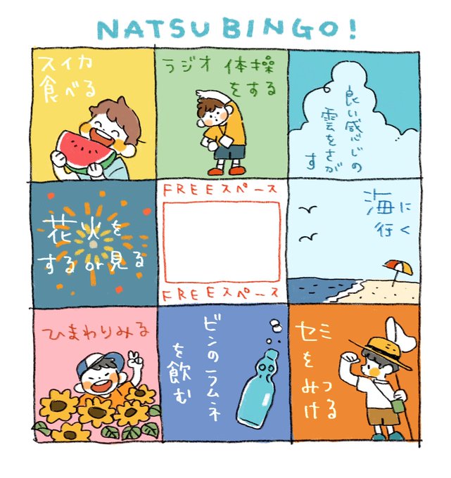 夏を楽しむ用のビンゴつくったので良かったら遊んでください〜🍉🏖🌻