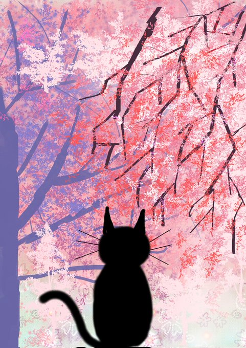 桜背景使いまわしで簡易な黒猫描いてみた(о´∀`о) #イラスト #絵 #黒猫 #猫 #桜