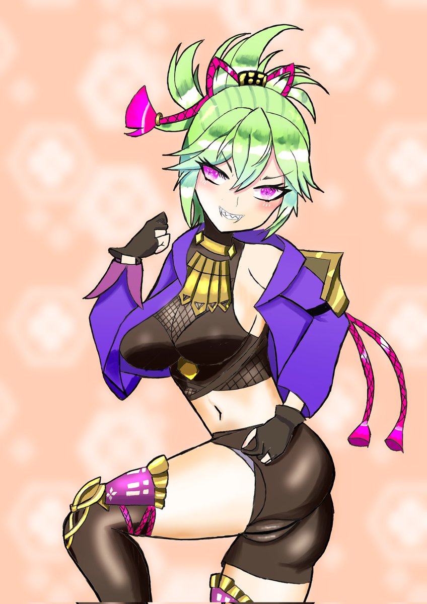 5 39 腰に手を当ててわき見せつけてそう(о´∀`о) 神の目反対やった… 目の描き方本見ながら色々挑戦中… #原神 #yelan #夜蘭 #夜兰 #GenshinImapct #イラスト 22/04/05 18:42