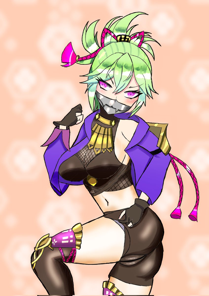 描けました(о´∀`о) 仮面の下は私の予測です 隠すぐらいだからコンプレックスあると予想(о´∀`о) #原神 #GenshinImpact #久岐忍 #shinobu #イラスト