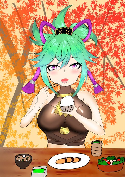 白ご飯が好きなのが良い(о´∀`о) #久岐忍 #KukiShinobu #原神 #GenshinImpact #イラスト #食欲の秋
