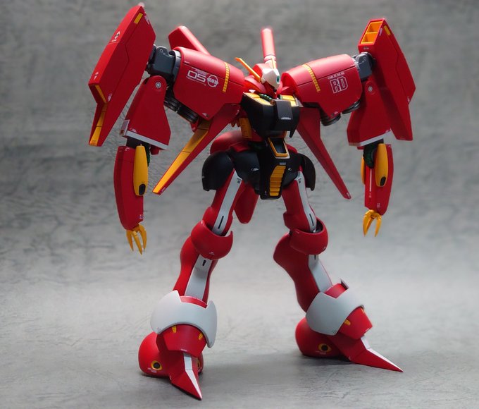 #ガンプラ #ガンプラの画像貼るとRTされると聞いて #今月作ったプラモ晒そうぜ バイアラン(エゥーゴ仕様)完成しました。 エゥーゴVSティターンズDXに登場した鹵獲カラーを参照に赤いカラーリングに仕上げ、エッチングパーツを塗装して各部に貼り付けました。