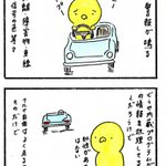 ヒヨコとたのしいクルマ? #4コマ漫画 #オリジナル #手描き #ヒヨコ #クルマ #運転アシスト #運転する楽しみ pixiv.net/artworks/10404…