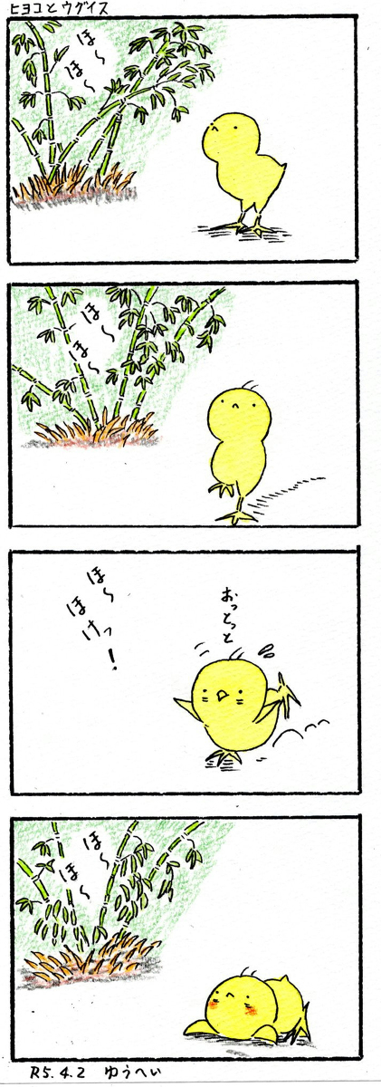 2 5 ヒヨコとウグイス #4コマ漫画 #オリジナル #手描き #ヒヨコ #ウグイス #さえずり pixiv.net/artworks/10685… 23/04/04 12:07