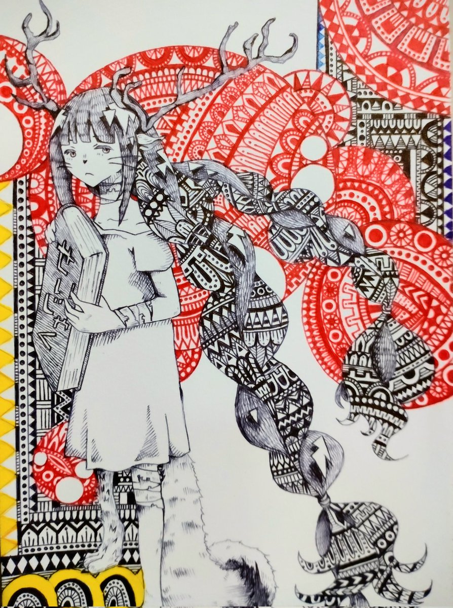無題な彼女。 #絵 #芸術同盟 #みんなで楽しむtwitter展覧会 #作品 #絵描きさんと繋がりたい #落書き好きさんと繋がりたい #落書きギルド