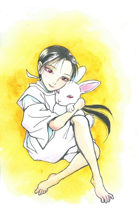 #年賀イラスト2023 #オリジナルイラスト #オリジナルキャラクター #白兎 ハガキサイズのアナログ画を #CLIPSTUDIO で加工修整しました。 この兎はアルビノってコトになるのかな。