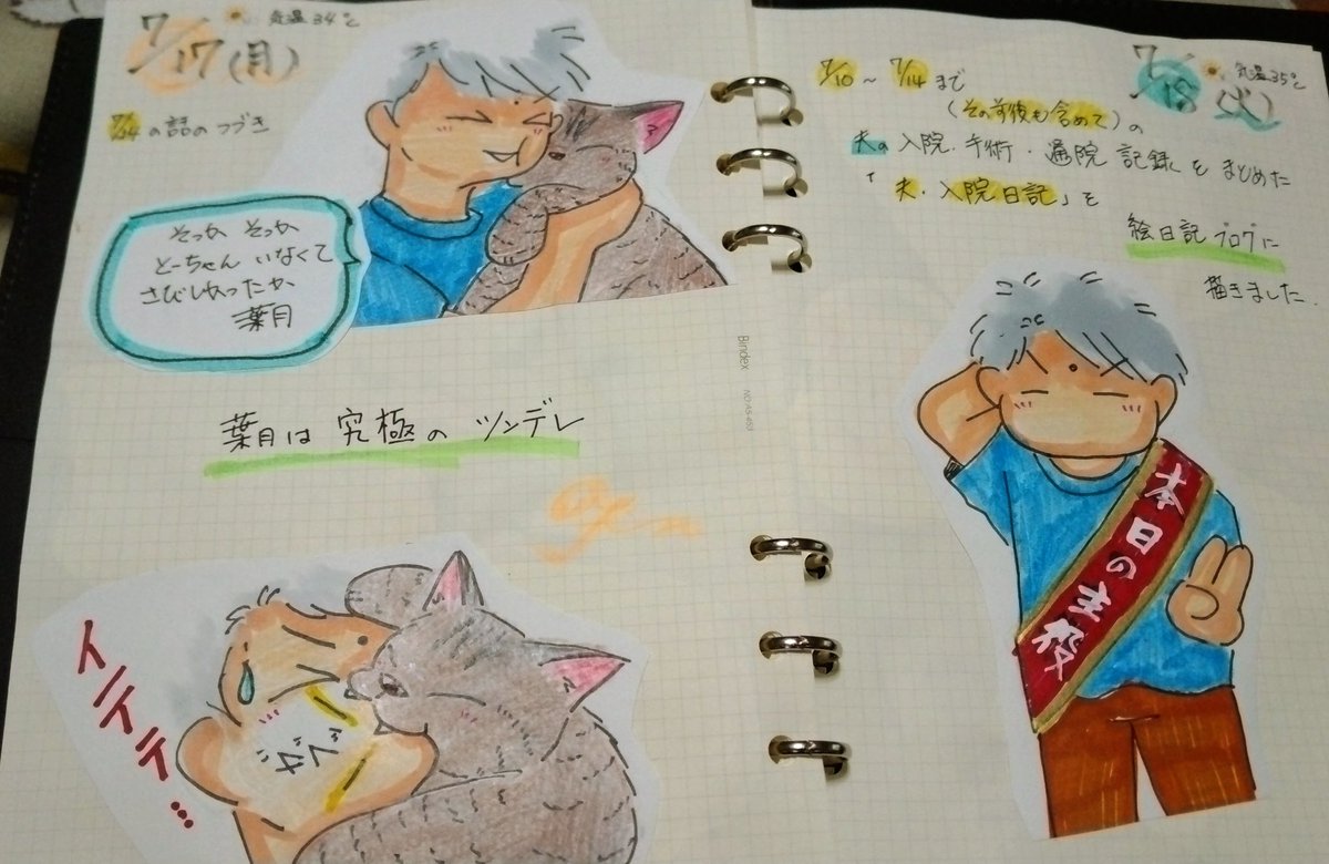 6 155 こんばんは。8/5と8/8~8/10までの #絵日記 描きました。 #イラスト #MIU404 #猫 #猫のいる暮らし 23/08/14 18:31