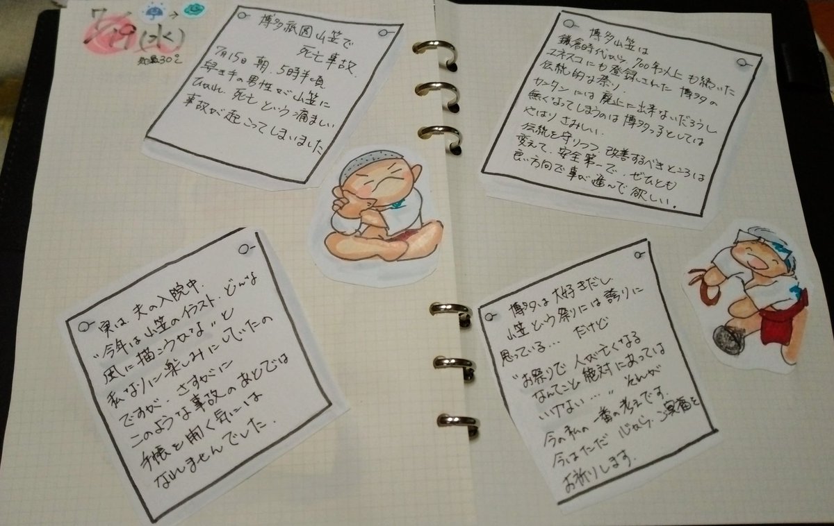 こんばんは。7/18と今日7/19の #絵日記 描きました。 博多っ子の私にとって、とても残念で悲しい事故が7/15起きてしまいました。 心よりご冥福をお祈りいたします。 #イラスト