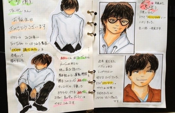 2 110 こんばんは。2/24~今日2/26までの #絵日記 です。 見開き1ページ分 #MeseMoa の #イラスト 描いちゃいました。 #あおいくん #白服さんとフォーゲルさん #アニメMonster 23/02/26 20:45