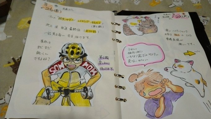 12 151 こんばんは。3/26と今日3/27の #絵日記 描きました。 #イラスト #弱虫ペダル #猫 #猫の居る暮らし 23/03/27 20:55