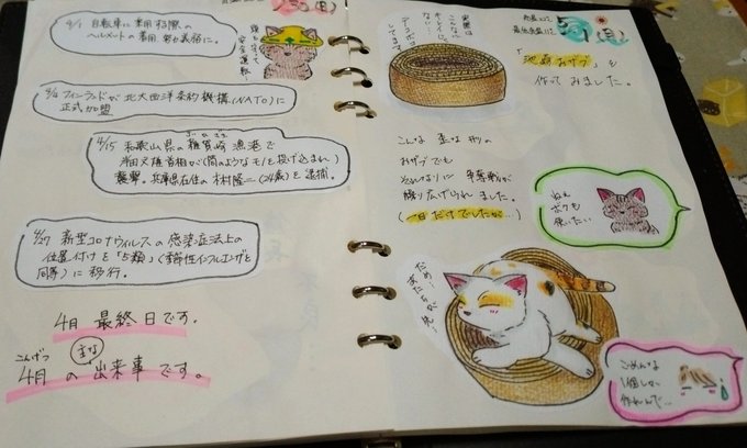 4 96 こんばんは。(私にとって)4月が始まりました。😅🌸 4/1~今日4/3までの #絵日記 描きました。 坂本龍一さん...心よりご冥福をお祈りします。 #イラスト #アナログイラスト #猫 #猫の居る暮らし 23/04/03 18:48