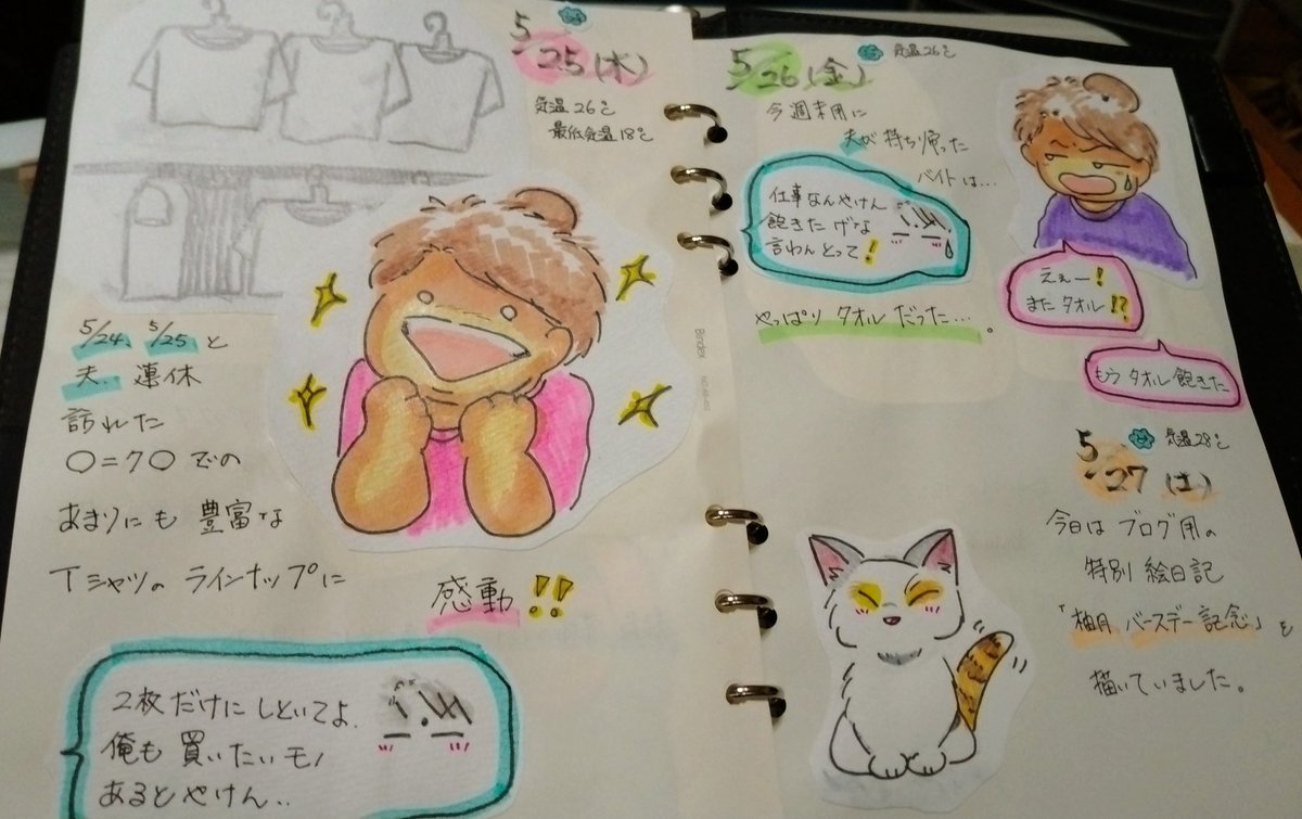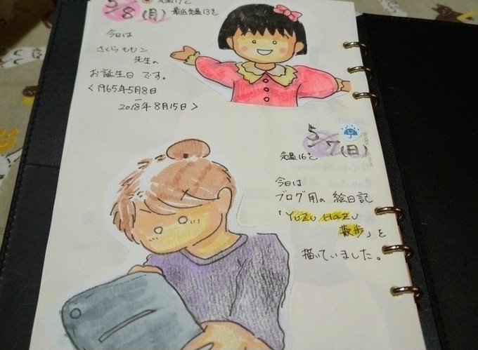 こんばんは。5/5~今日5/8までの #絵日記 描きました。 #今日はさくらももこ先生の誕生日 #イラスト #猫