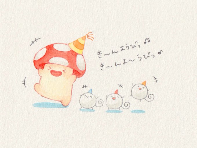 月曜日〜🍄🎶 げつようび〜〜🍄🎶 考えすぎると疲れるよ🍄 めんどくさい時は力を抜こうね🍄 きのこはとりあえずおどってる🍄 #純粋なきのこちゃん #水彩イラスト #色鉛筆 #イラスト好きさんと繋がりたい