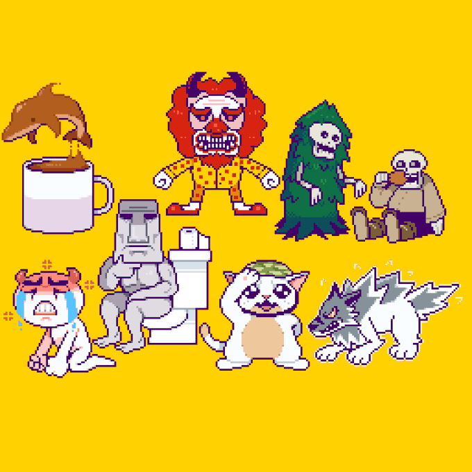 Strange fellows, designed by fusing emojis #pixelart #ドット絵