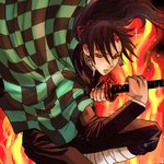 #竈門炭治郎生誕祭2021 #竈門炭治郎誕生祭2021 おめでとう炭治郎くん!! 優しい君が大好きだ!! カッコイイ君が大好きだ!! はじめて真面目にエフェクト使って炎を描いたよ😆 柱ifってことで長髪にしました