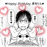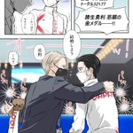 再度上げ直し。勇利くんお誕生日おめでとうございます🎂🎊 ずーっと応援してます💙📣 無配の絵を加工しました。コーチ…いい加減にしなさい(笑)#勝生勇利生誕祭2021 #勝生勇利選手の誕生日を祝い隊2021