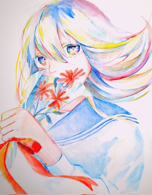 0 5 #イラスト #水彩 #オリジナルイラスト 春風 23/03/25 17:40