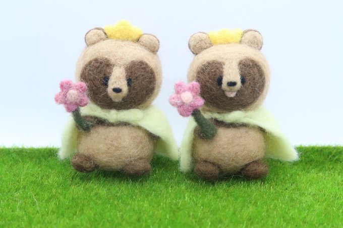 10 32 もふ山さん(@no_mofu_no_life)のたぬ王子が双子になりましたw 右が2体目なのですが2体目の方がちょっと幼くヤンチャっぽい気がします。 #羊毛フェルト 23/05/18 12:04