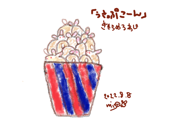 0 5 おやつうさぎシリーズ 「うさっぷこーん」 #イラスト #うさぎ #オリジナル#おやつ#ポップコーン sketch.pixiv.net/items/77964316… 22/08/13 16:21