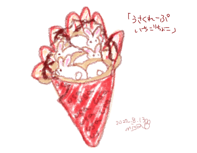 0 5 「うさくれーぷ いちごちょこ」 おやつうさぎ #おやつ #イラスト #うさぎ #クレープ #いちご sketch.pixiv.net/items/95438553… 22/08/13 16:58