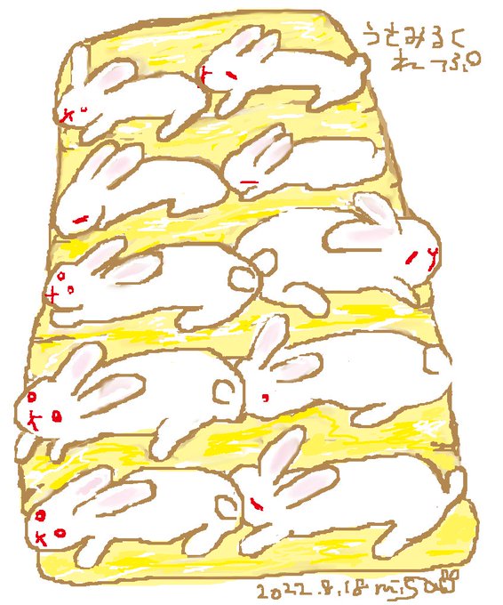 1 6 色鉛筆バージョンも載せとく。 うさみるくれーぷ フィルムつき おやつうさぎ #うさぎ #おやつ #ケーキ #ミルクレープ #イラスト #うさぎ好きさんと繋がりたい 22/08/18 20:18