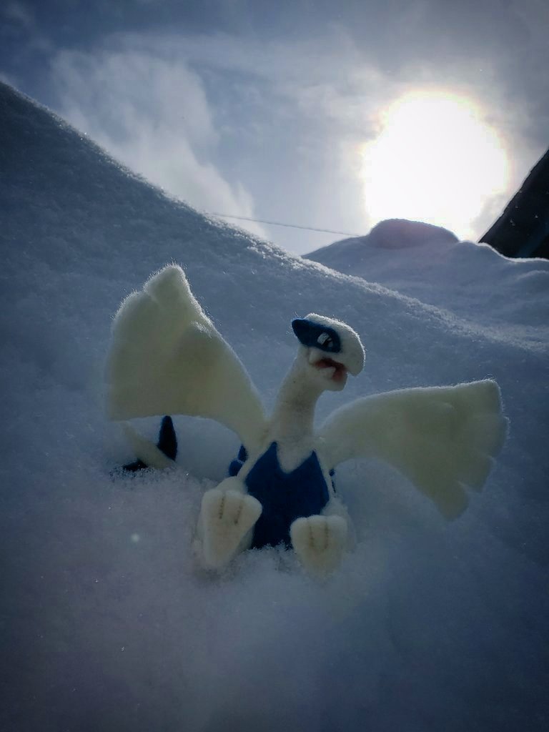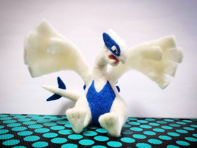 羊毛フェルトでルギア作りました~!! 羽は可動式ですヾ(・ω・ヾ) 夜のルギアと昼のルギアどちらがお好みですか?☺️ ポケモン・オブ・ザ・イヤー、ジョウト地方にて15位ランクインおめでとう👏✨ #羊毛フェルト #ポケモン刺せるかな