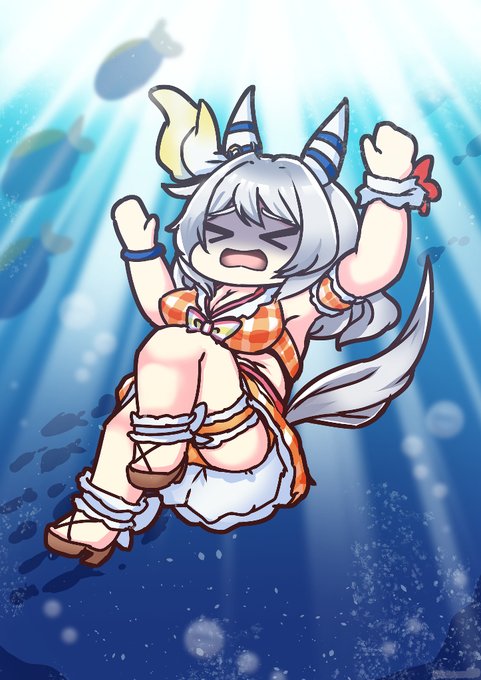 「発動した瞬間服がはじけ飛んで水着姿になり、脚が勝手に水際に向かって走りだし強制的に水に入ってしまう」水着スペちゃんの固有スキルを継承させられてしまったミラ子 #ウマ娘 #シヒミラクル