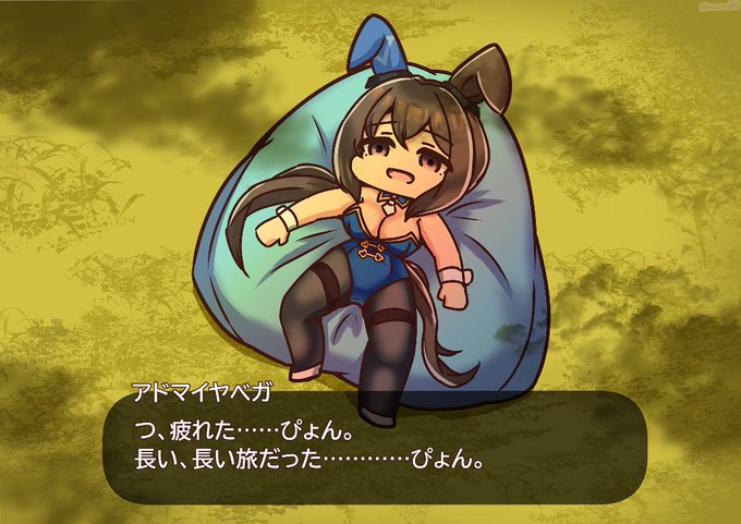 思い切って演出に全振りした結果、小劇の「疲れたぴょん」がやたらリアリティのある演技になってしまったウサギさん役アヤベさん #ウマ娘 #アドマイヤベガ