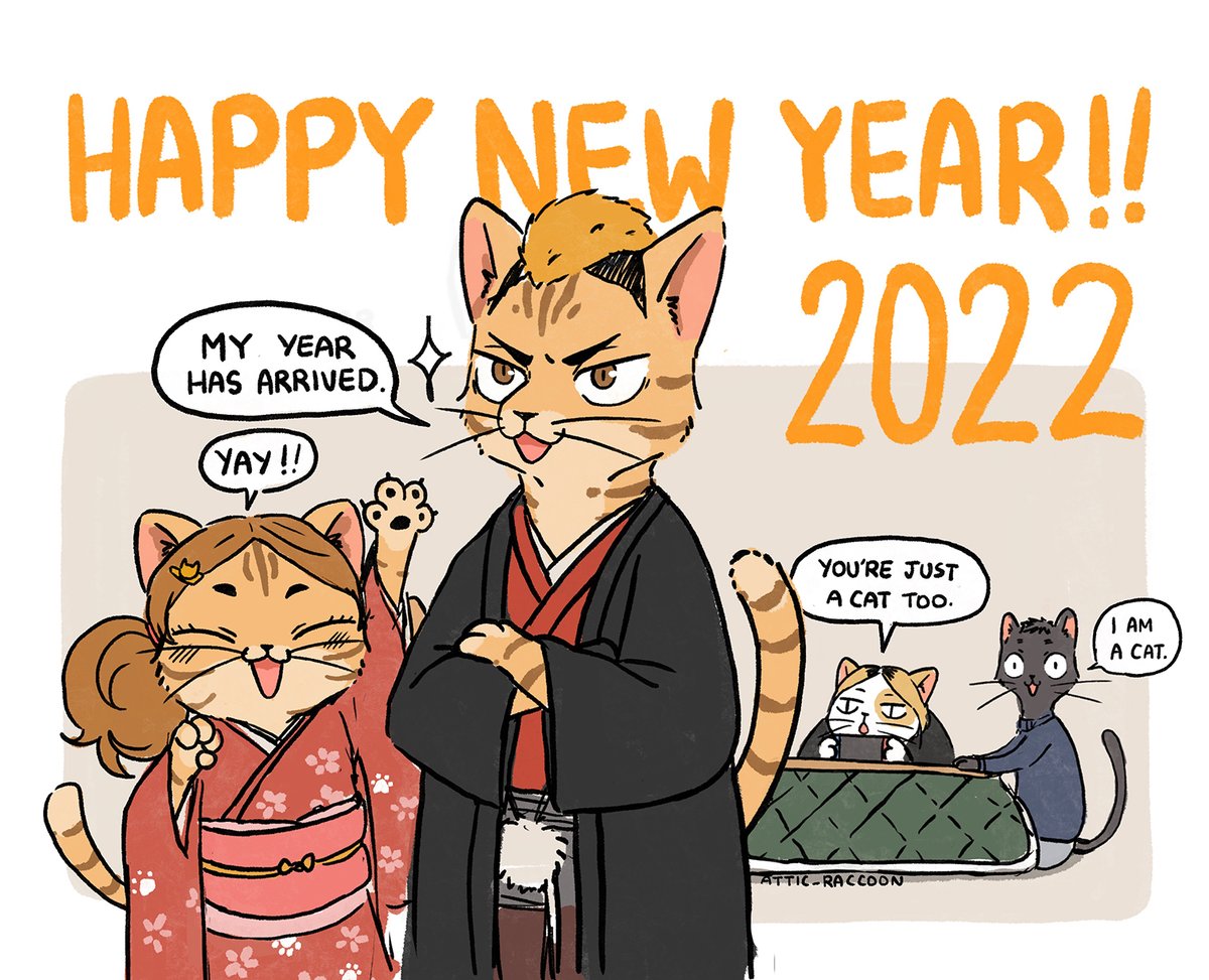 Happy new year, everyone!! Starring Haikyuu's resident tiger, his adorable cat little sister, and some cat friends. #HAPPYNEWYEAR2022