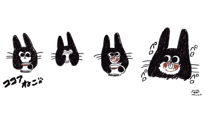 ココアを飲むのがへたで不憫なねこ(?)を描きました。 #ココアねこ #イラスト