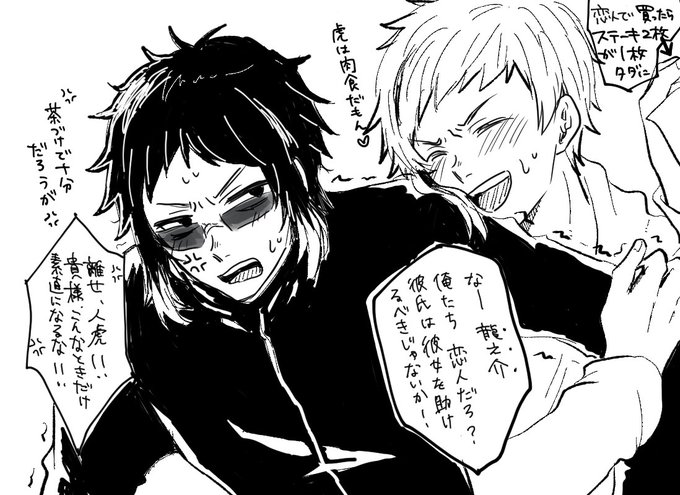 #5月5日は人虎の誕生日2022 #探偵社の可愛い虎君の生誕祭2022 おめでとうございます。 (過去絵かつ先輩がちょっと目立っていて申し訳ない)