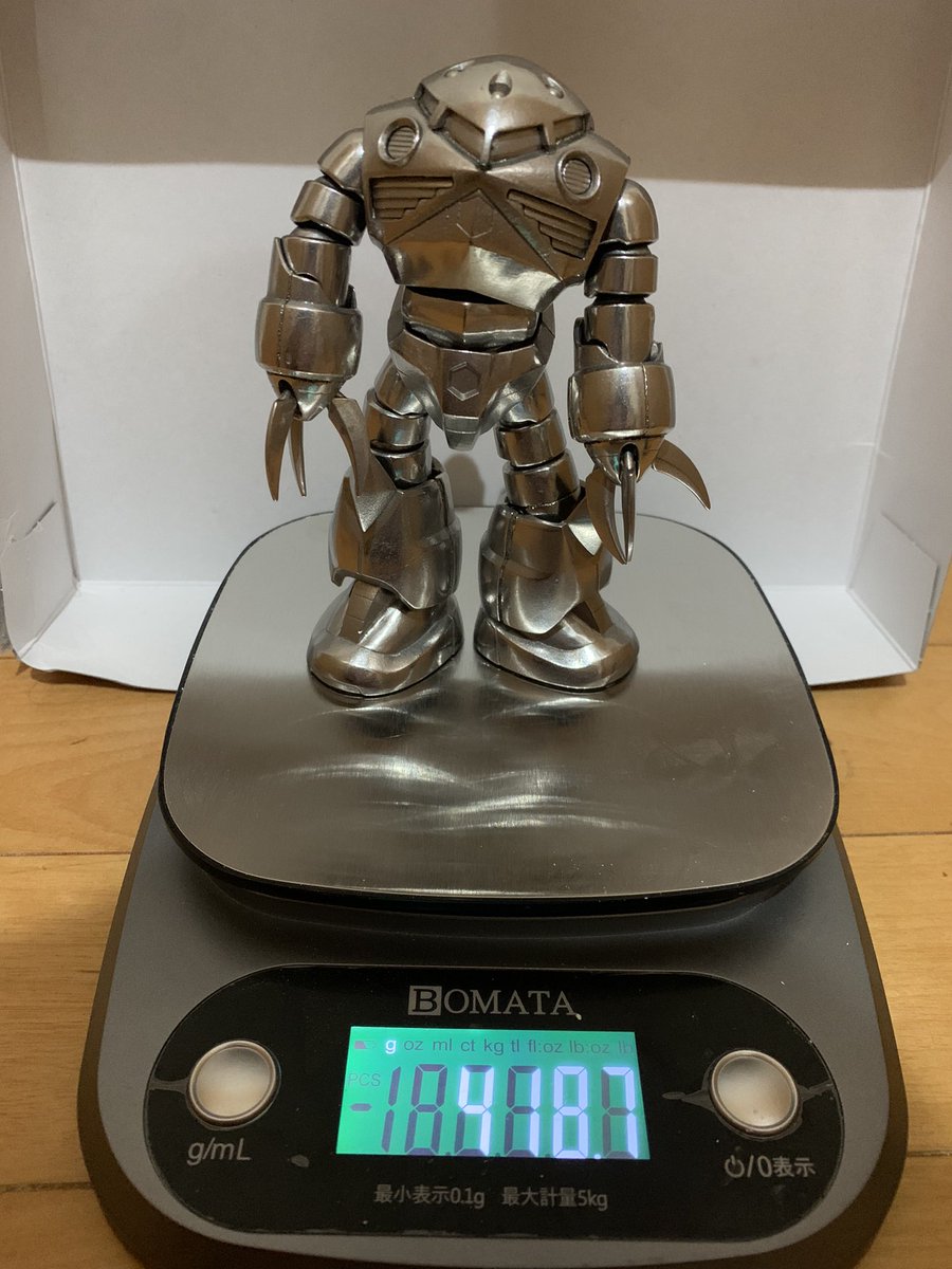 昨日の模型会さんでのご感想を聞いて、鋳造塗装かと思ったら本当の金属だったから、グラム写真を貼った方がいいかもとの案がありましたので! とても嬉しい事をたくさん言っていただき嬉しかったです #ガンプラ #ガンプラ好きと繋がりたい #ガンプラの画像貼るとRTされると聞いて #ズゴック #ガンダム