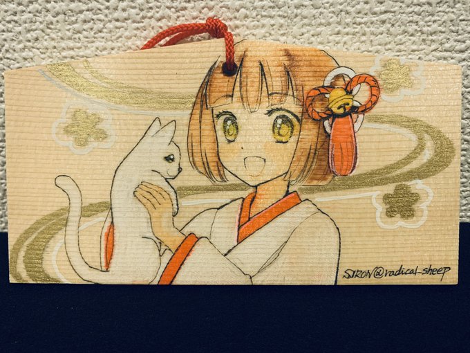 今日は地元の神社⛩に お参りしに行きました。 近年おみくじは末吉ばかりでしたが 今年はなんと『中吉』に…✨ 『運』を付与する木臼で餅つく巫女さんの #絵馬アート を描いたおかげ…?!なんてね😉 🐈⬛🐾 siron.world|#SIRON|🎨 #絵馬 #ART