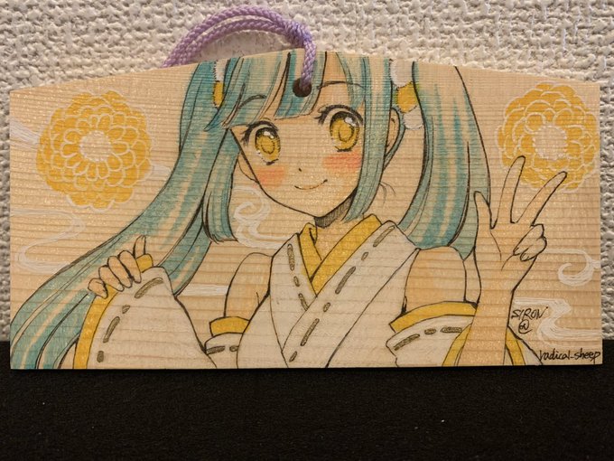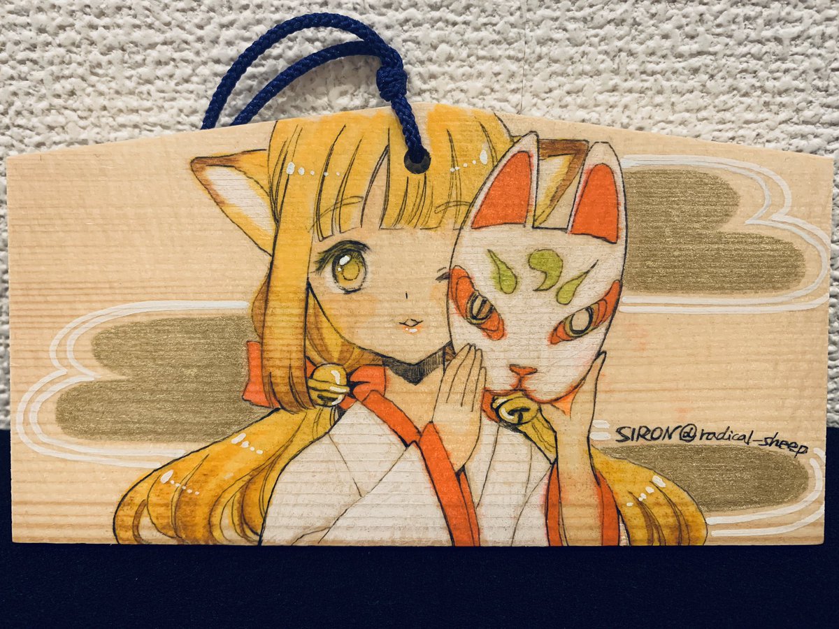 3 5 絵馬にイラストを描いたよ🌤 巫女シリーズです✨ #絵馬アート #水彩 #SIRON 20/04/05 09:30