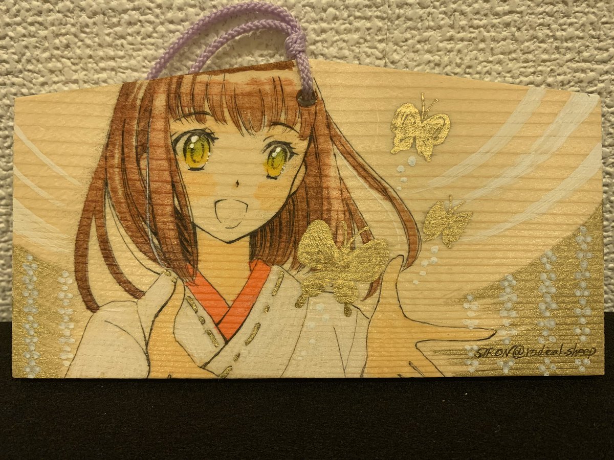 絵馬にイラストを描いたよ🌤 巫女シリーズです✨ #絵馬アート #水彩 #SIRON