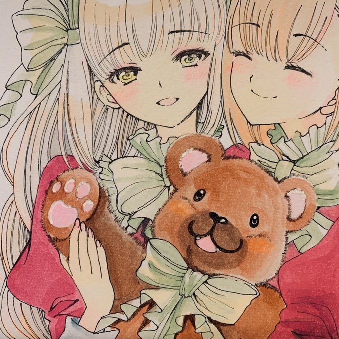 3 6 本日の一枚🧸💕 「むぎゅ〜〜〜っ」 #オリジナル #水彩 #色紙アート #SIRON 20/04/26 16:51