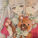 本日の一枚🧸💕 「むぎゅ〜〜〜っ」 #オリジナル #水彩 #色紙アート #SIRON