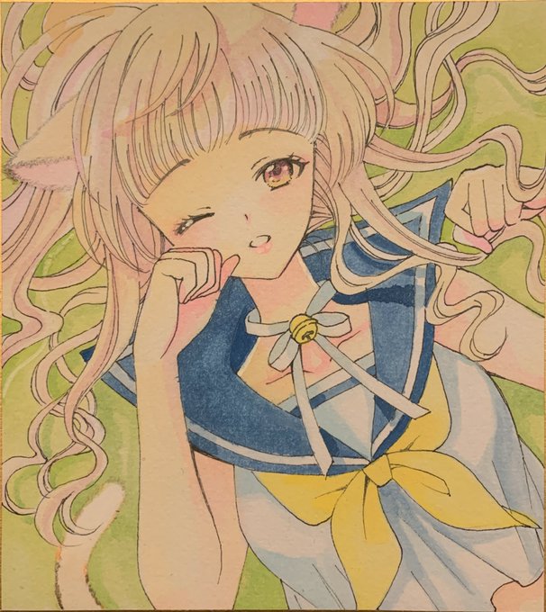 1 1 本日の一枚🐈🌱 「むにゃあっ」 #オリジナル #水彩 #色紙アート #SIRON 20/04/28 23:26