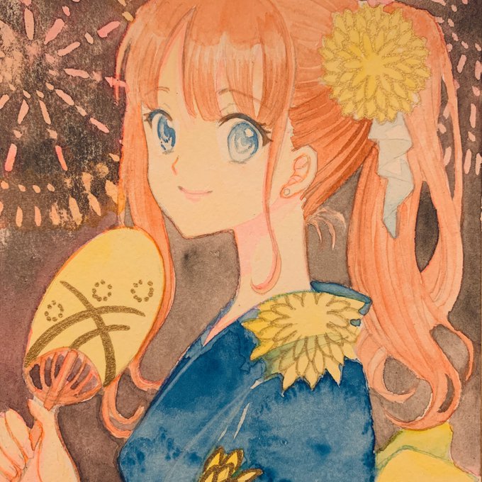 2 3 今日の一枚🎆 「ちょっと早いけど、いいよね!」 #オリジナル #水彩 #色紙アート #SIRON 20/05/06 20:36