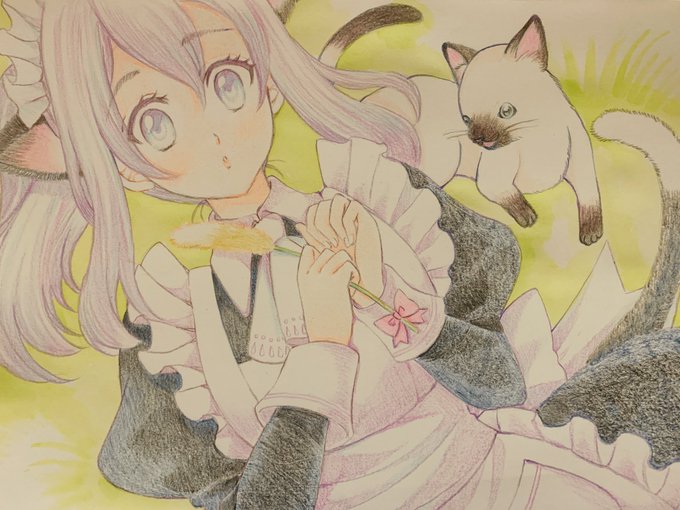 1 4 本日の一枚🐈 「ネコ専属メイドさん」 #オリジナル #色鉛筆 #SIRON 20/05/25 19:36