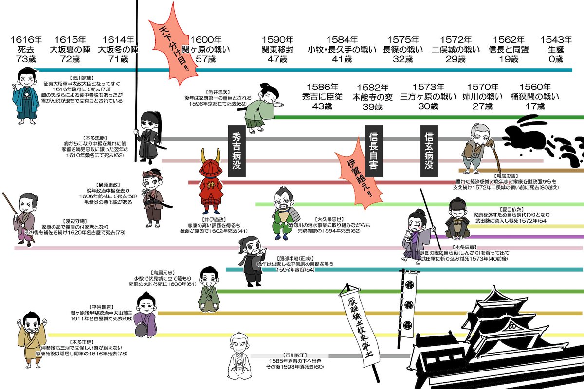 そろそろ中盤なので再掲 ⚠️心の準備をしておきたい人向け どう家三河家臣団の晩年(死没のタイミング) ※年齢は死没年−生誕年で計算