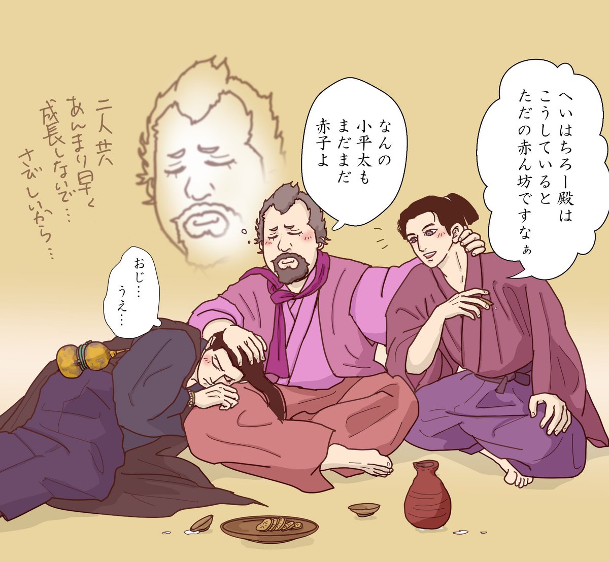 城に戻った平平を妄想 満身創痍ながら独特の慰め方をする小平太と叔父上の愛の拳だけが効いてた平八郎
