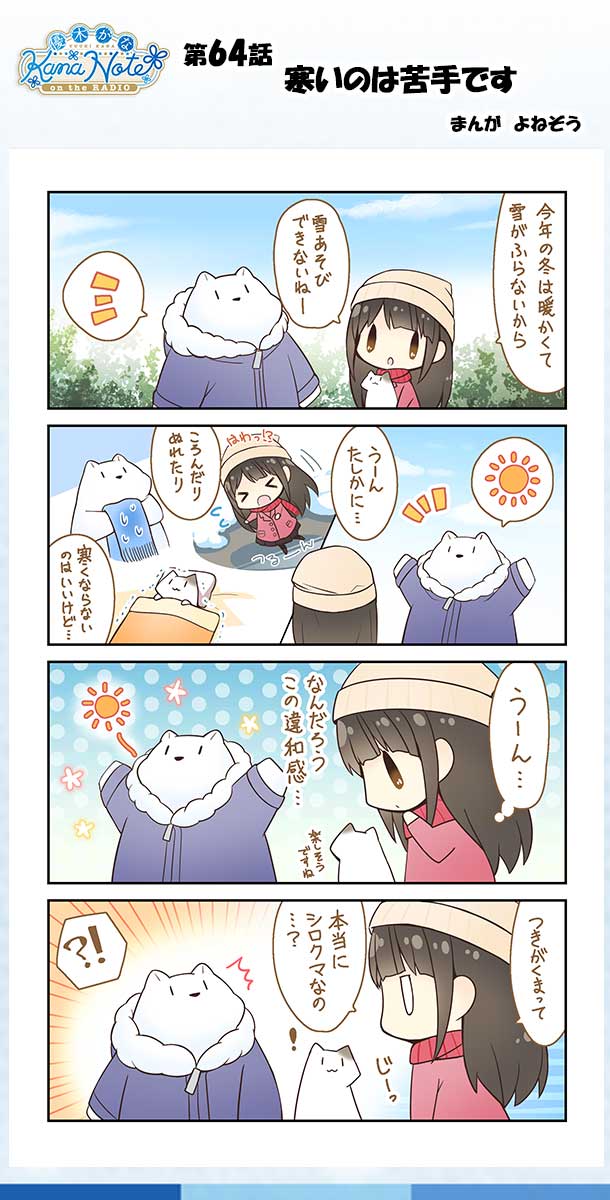 【週刊連載|番組スピンオフ4コマ漫画】 かなちゃん、頑張る。 「第64話 寒いのは苦手です」(まんが:よねぞう) #優木かな #かなのーと