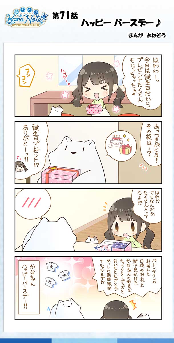 【週刊連載|番組スピンオフ4コマ漫画】 かなちゃん、頑張る。 「第71話 ハッピーバースデー♪」(まんが:よねぞう) #優木かな #かなのーと